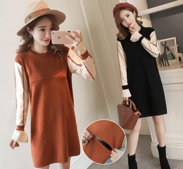 胸元ジッパーで授乳もラクラク♪授乳口つきワンピースです。