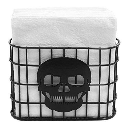 MyGift Skull Design Tabletop Napkin Holder, Metal Wire Paper Towel Dispenser, Black