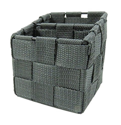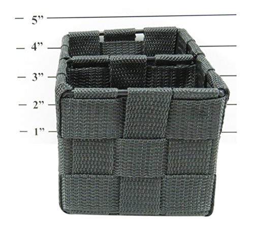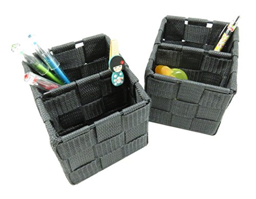 Office Desk Pen Pencil Holder Organizer 2 Compartments Woven Strap 4.5 x 4 Gray (Set of 2)