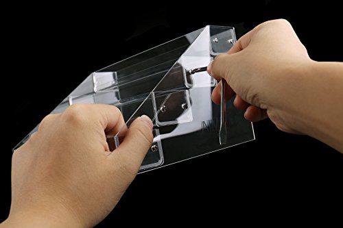 - Structured with heavy duty clear acrylic, comes with stainless screw, a screwdriver and user manual. Above all, it is easy to assemble, and sturdy enough for your needs.