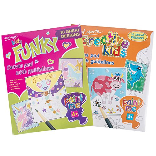 - Creative and educational coloring book featuring primed sheets of artists' canvas with guidelines