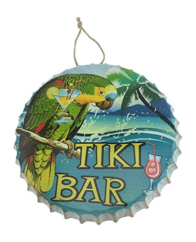 Tiki Bar Metal Bottle Cap Hanging Sign with Parrot