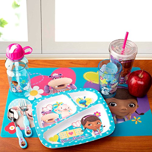 - Feature : Set of child size flatware includes 1 fork and 1 spoon; featuring Doc McStuffins / Smaller size and contoured shape is perfect for small hands and encourages independent eating / Made of stainless steel and BPA-free plastic / Dishwasher safe; do not microwave / Look for other Zak! Designs items that coordinate with the Doc McStuffins flatware
