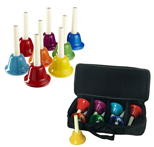 Rhythm Band 8 Note Metal Hand Bells - Set of 8 with Case for 8-Note Hand bells Holds 8 Metal Hand Bells
