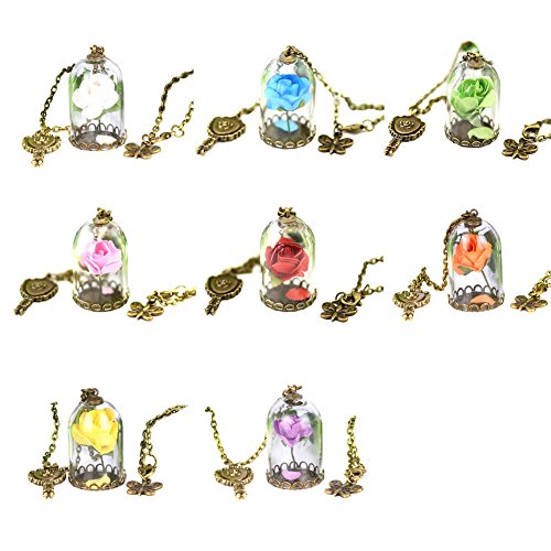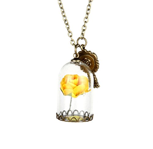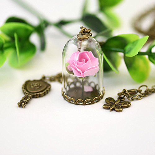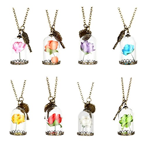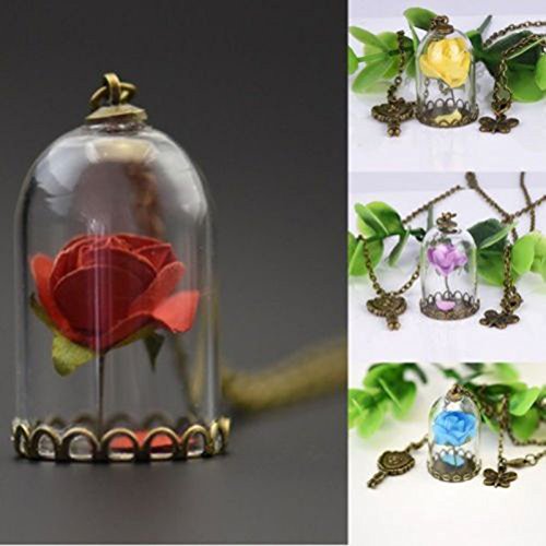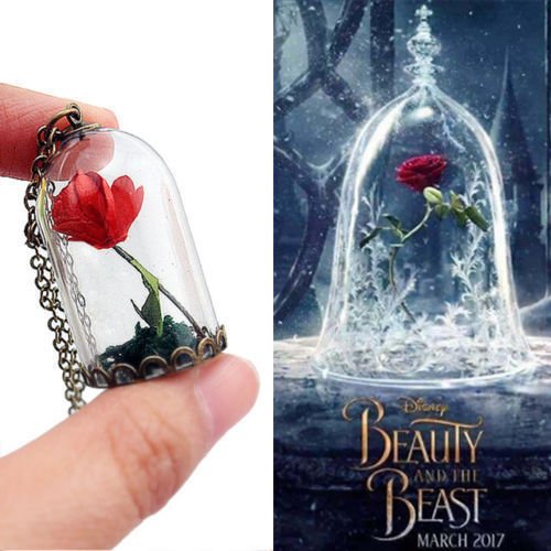 -. Title : Beauty and the Beast Glass Covered Dry Rose Chain Necklace Pendant Lovers Anniversary Valentines Gift