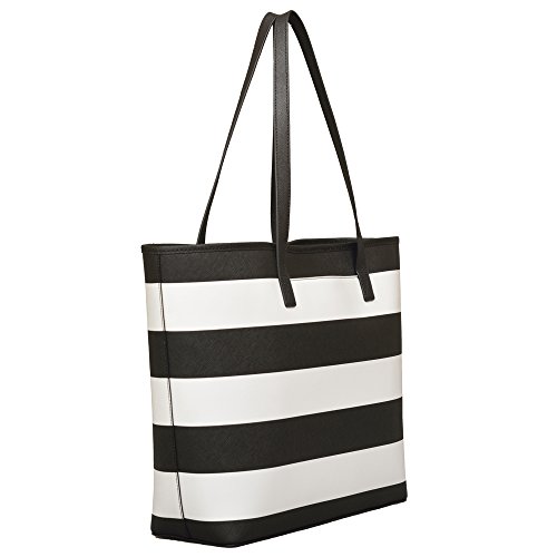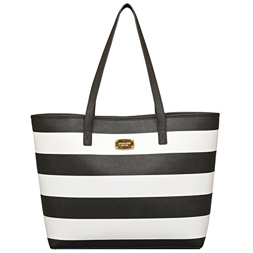 -. Brand : MICHAEL Michael Kors -. Color : Black / White -. Department : womens -. EAN : 0787421734829 -. Feature : Made of striped, textured Leather and Gold hardware / Double flat leather handles / Magnetic tab snap closure / Five interior pockets / 13.75"W x 12.25"H x 4.5"D - Drop = 10" -. ProductGroup : Shoes -. ProductTypeName : HANDBAG -. Title : MICHAEL Michael Kors Medium Jet Set Stripe Travel Tote in Black / White -. UPC : 787421734829