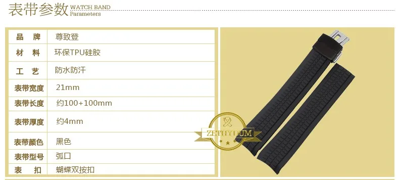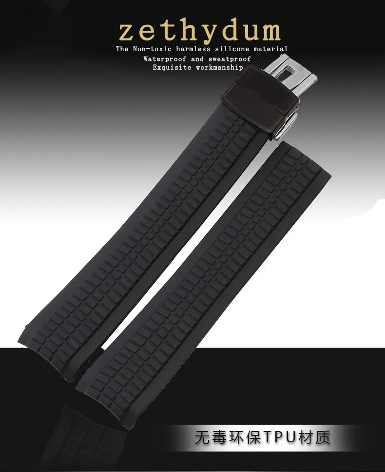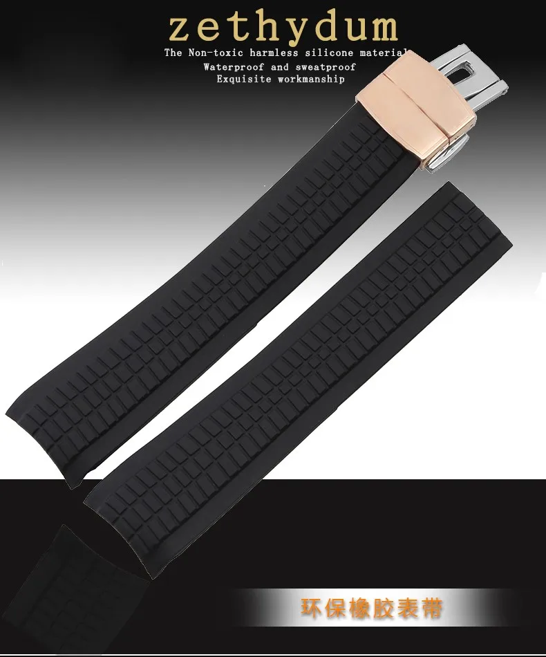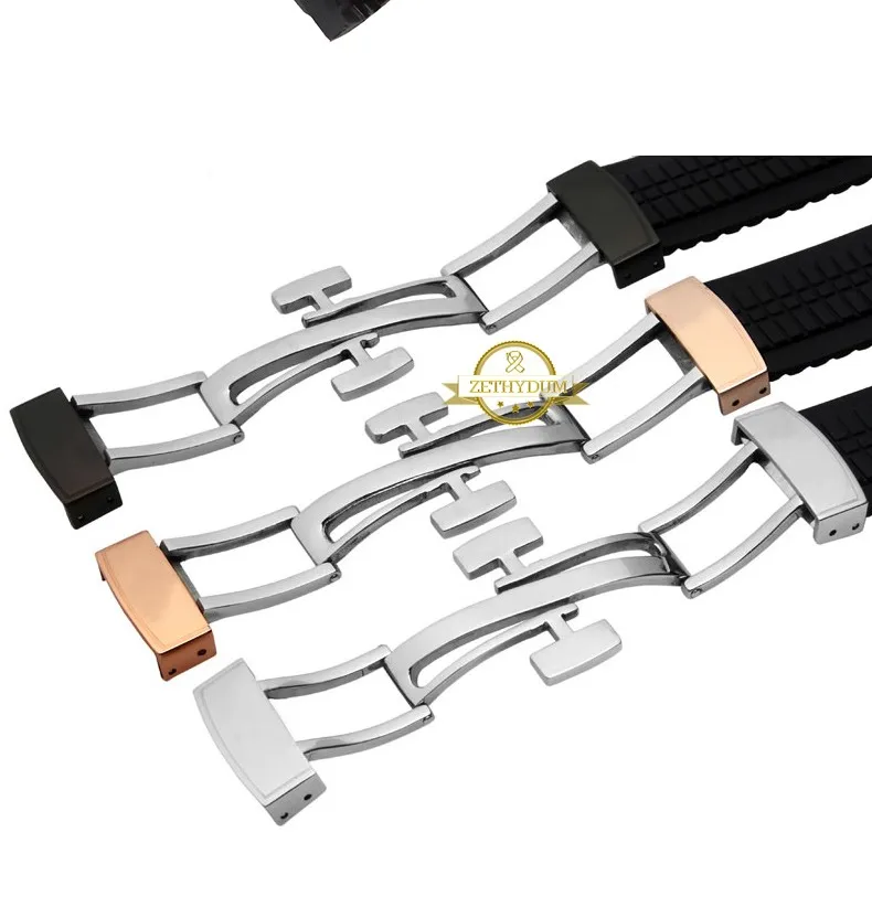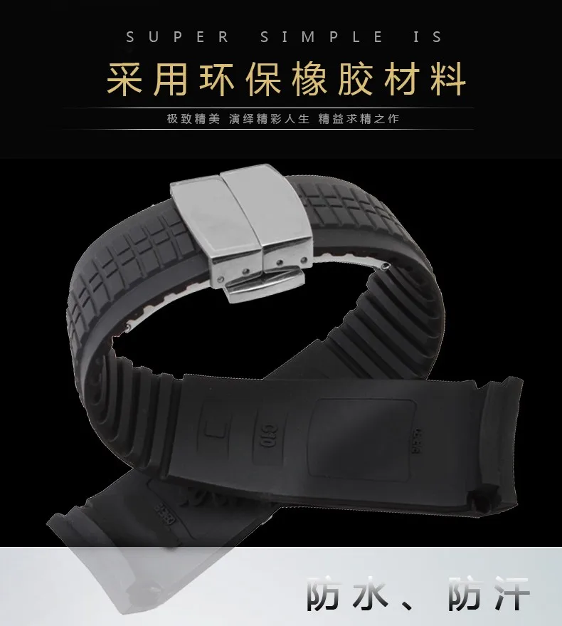 실리콘 고무 팔찌 시계 스트랩 손목 팔찌 남성 21 미리메터 손목 시계 밴드 손목 스트랩 접이식 걸쇠