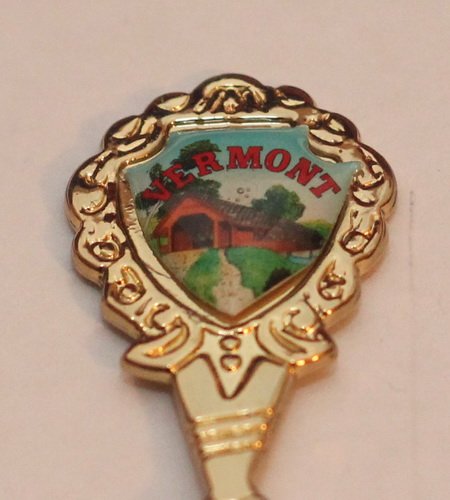 Vermont State Souvenir Gold Plated Collectible Twist Spoon 5" lpco