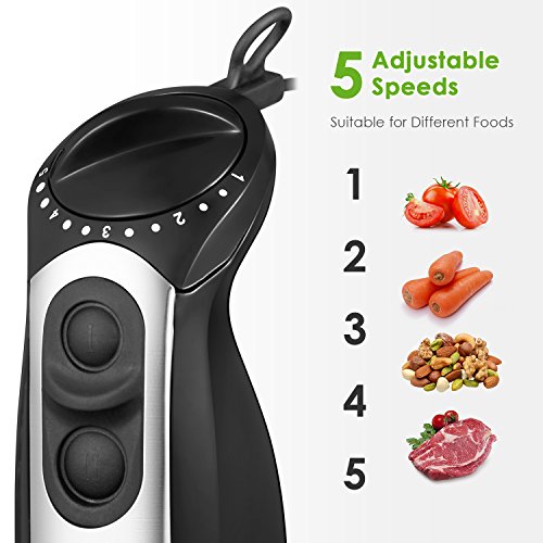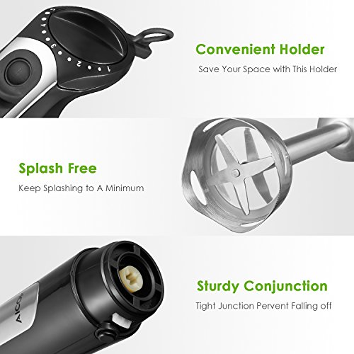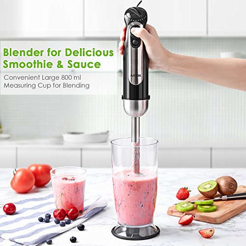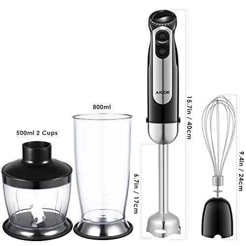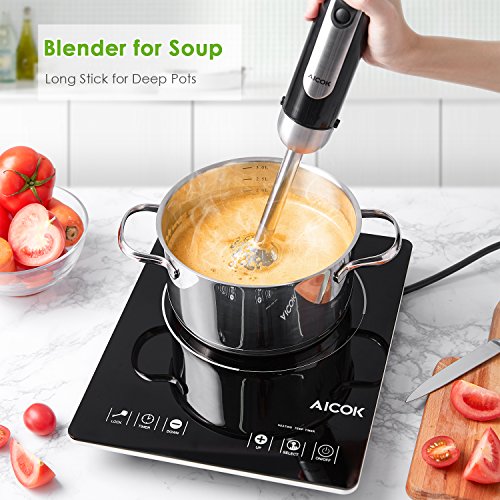 Stabmixer Aicok mit 5 Geschwindigkeitsstufen, Purierstab 4 in 1 mit Zubehor, 700W, Schwarz
