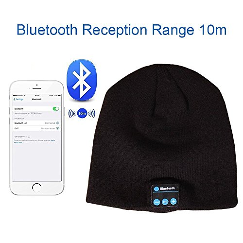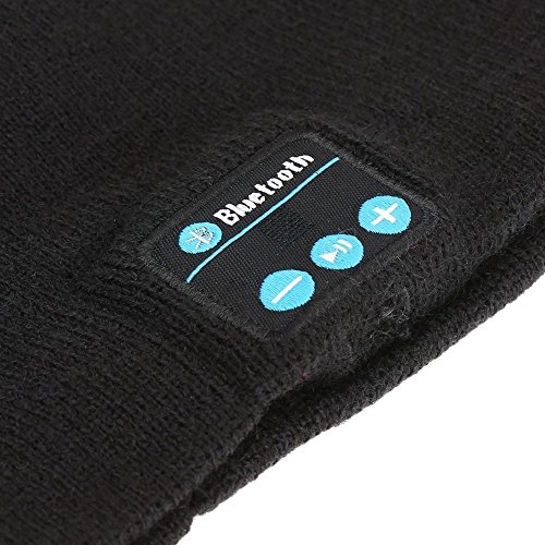 Happy-top Bluetooth Music Soft Warm Beanie Hat Cap with Stereo Headphone Headset Speaker Wireless Mic Hands-free for Men Women Gift (Black)