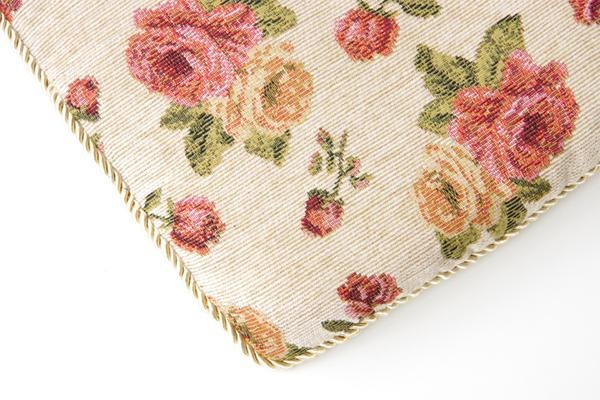 花柄が上品なクッションです。表地にはジャガード織の生地を使用しているため繊細な柄と上品な風合いが特徴です。