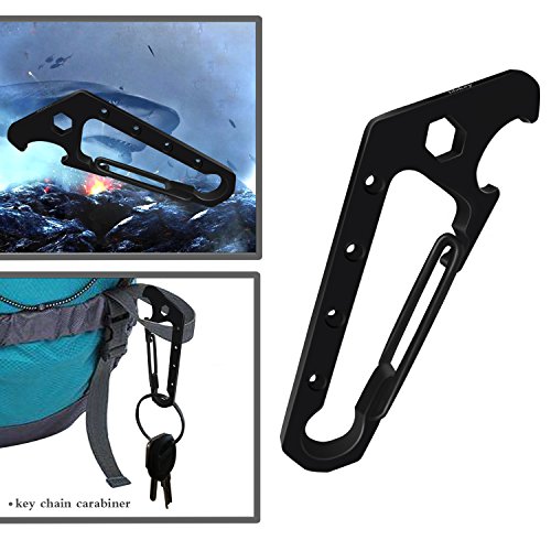 Idakey Full Stainless Steel Key Chain Multi Tool Carabiner Keychain Clip Black