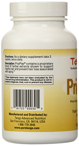 -. Binding : Health and Beauty -. Brand : Tango Advanced Nutrition Formulas -. EAN : 0181725000305 -. Feature : Natural Hair Restoration Formula / 180 Caplets / Our flagship formulas are modern versions of traditional essence herbs historically used to enhance energy, rejuvenate vitality and improve general health. -. IsAdultProduct : 0 -. Label : Tango Advanced Nutrition -. LegalDisclaimer : These statements have not been evaluated by the Food and Drug Administration. This product is not intended to diagnose, treat, cure, or prevent any disease. -. Manufacturer : Tango Advanced Nutrition -. PackageQuantity : 1 -. ProductGroup : Health and Beauty -. ProductTypeName : HEALTH_PERSONAL_CARE -. Publisher : Tango Advanced Nutrition -. Studio : Tango Advanced Nutrition -. Title : P.R.IaPlex (180 Caplets) -. UPC : 181725000305