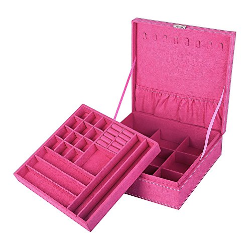 Two-layer Lint Jewelry Box Display Storage Organizer Case Jewelry Storage Holder Box for Women and Girls(rose)