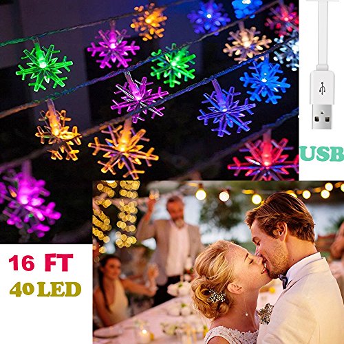 16foot/40LED Xmas Snowflake String Light String Xmas Party Party Decorative Light String Outdoor Waterproof House Decorative Light String Interior Decoration (Multicolor)