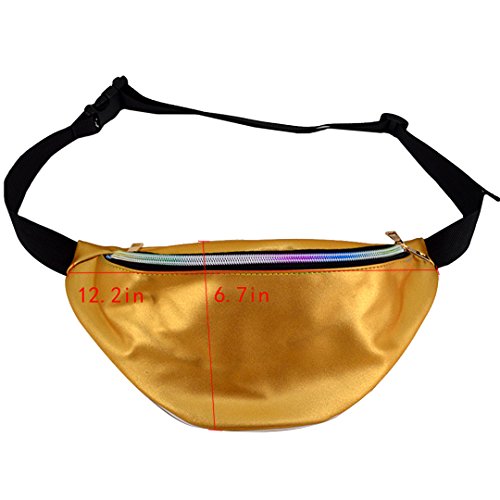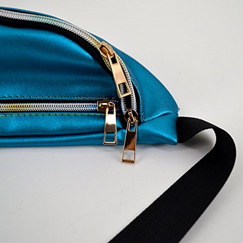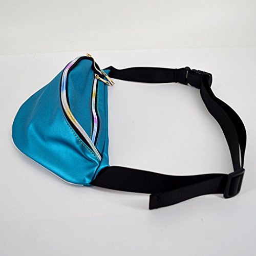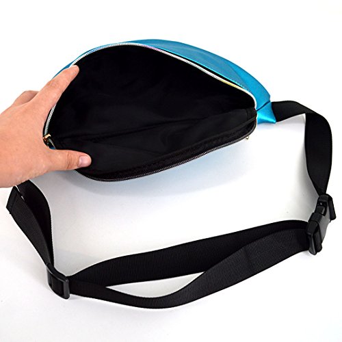 -. Feature : Made of high-quality PU leather and poly-cotton; glossy to look, easy to clean and durable to use. / Holographic fanny pack could reflect lights, change colors, shining and bling in the sunshine, looks fashionable, stylish and full of personality. / Adjustable strap fits different body waist and the adjustable waist belt can also used for shoulder strap.