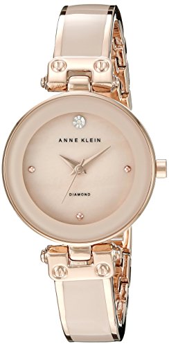 Mineral crystal lens; blush pink mother-of-pearl dial with genuine diamond at 12; rose gold-tone hand and markers