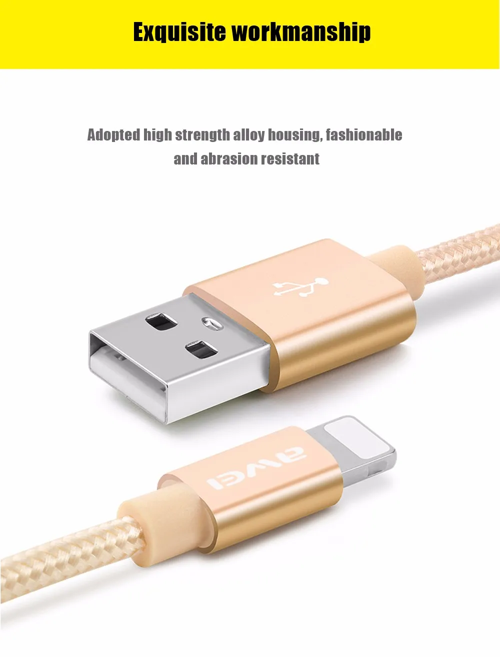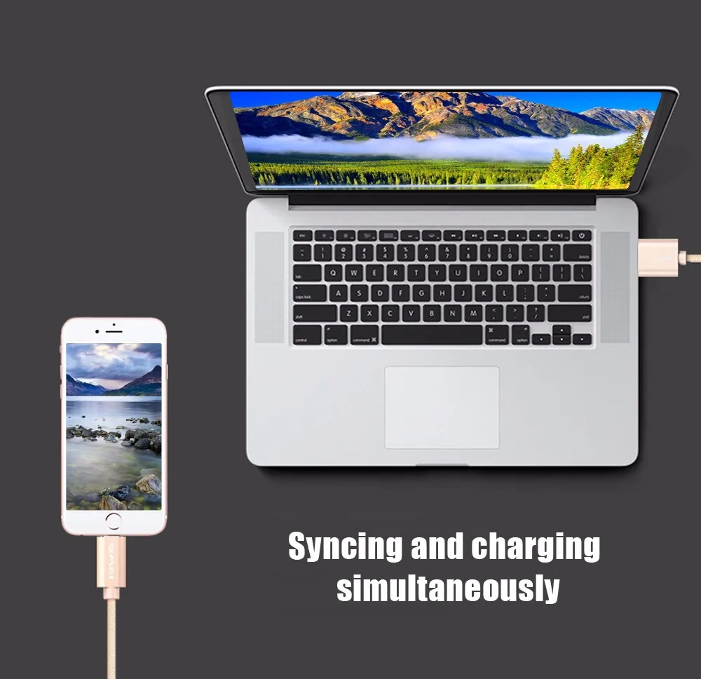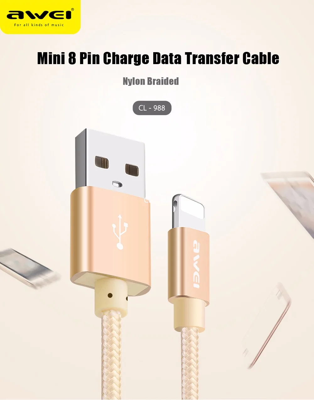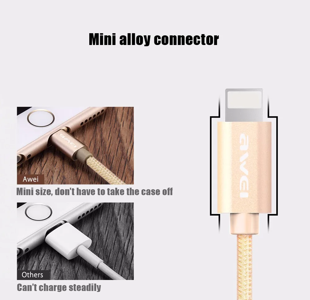 For iphone Cable Awei CL - 988 8 Pin Mini USB Smart Data Cable Nylon Braided Cable Transfer Data Synchronization Cord 0.3m u0026nbsp;