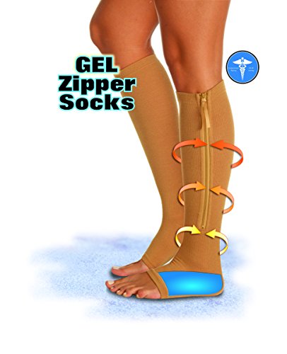 Gel Heel Open Toe Zipper Compression Socks Small/Medium