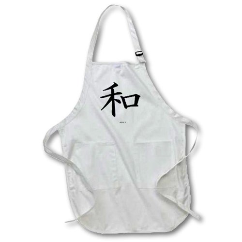 3dRose apr_52373_1 Japanese Sign for Peace 22-Inch Width by 30-Inch Length Apron with Pockets, Full Length, White