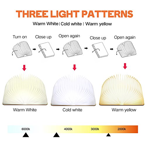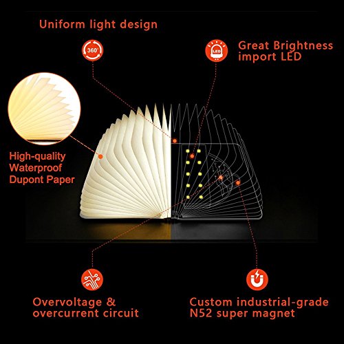 - ❤️ A 3 COLOR -- bright white, warm white and yellow, Uniform light design,Great Brightness import LED,High-quality Waterproof Dupont Paper,Overvoltage & overcurrent circuit,Custom industrial-grade N52 super magnet,waterproof LED folding book lamp, art lamp, decorative lamp, desk lamp/desk lamp/wall lamp.The book cover material is black walnut, simple and environmentally friendly, warm eye care lighting, portable and diverse.