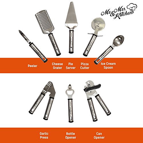 -. Title : Mr. & Mrs. Kitchen Cooking Utensils Set - 39 Piece Premium Tool and Gadget Set Stainless Steel And Nylon – Turners, Tongs, Spatulas, Pizza Cutter, Whisk, Bottle Opener, Grater, Peeler, Can Opener