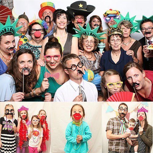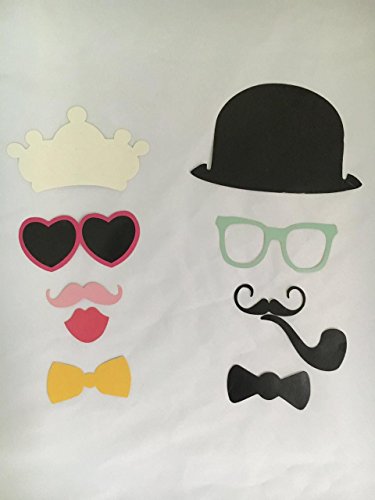 - 44 Pieces of Different Party Props Include Hat, Mustache,Bow Tie, Red Lips, Pipe, Glasses