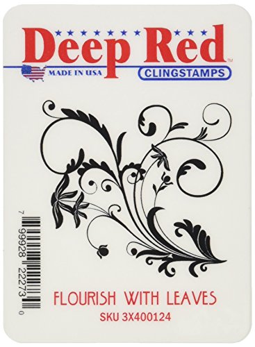 Deep Red Stamps Flourish with Leaves Rubber Stamp