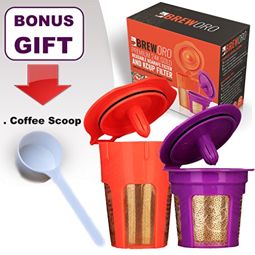 -. Title : Brew-Oro 24K Gold Reusable K Cup and K Carafe Coffee Filter Pod - Accessories for Keurig 2.0 K200, K300, K400, K500 Series and 1.0 Brewers - Bonus Coffee Scoop