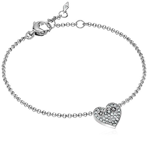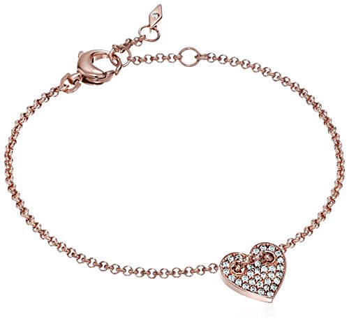 -. Feature : Measurements: lay flat length 7" + extension / Finish: polished steel rose gold-tone rolo chain bracelet with heart shaped clear crystal micro pav pendant / Closure: lobster clasp / Luggage: Jewelry / Jewelry