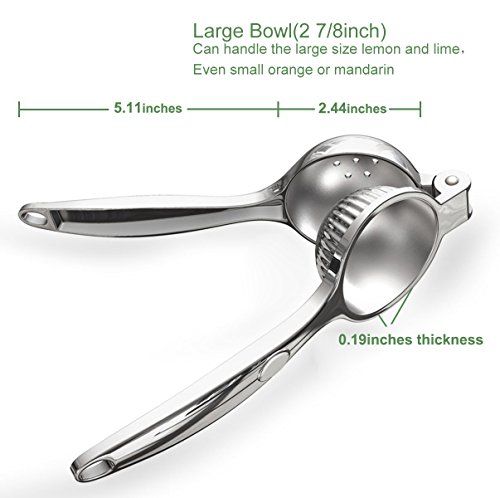 -. Feature : SUPERIOR WORKMANSHIP--Employed in the manufacture of the finest lemon wedge squeezer, use of high quality food grade Zinc Alloy casting, durable and will not rust. / EASY TO USE -- Simply cut lemon in half horizontally and place fruit in bottom bowl cut-side down, skin side up. Squeeze top handle down until desired juice amount is achieved. It squeeze every last drop from your fruit. You'll be amazed that how simply and easy to use. / LARGE CAPACITY - Large bowl (2 7/8 inch) can handle large size lemon and lime, even small orange . Do not waste time trying to squeeze them with your bare fingers. Your hands will not be stained with lemon juice by using this tool. / EASY TO CLEAN--Simply place this high-end lemon squeezer in the dishwasher or rinse it with mild detergent water after use . Do not forget to wipe it thoroughly. / 100% MONEY BACK: BUY WITH NO RISK. If you don't absolutely love your OVOS Lemon Squeezer, contact us for full refund with no questions. YOU'RE GETTING THE BEST. DON'T WASTE MONEY ON OTHER CHEAPER LESSER QUALITY PLASTIC OR ALUMINUM SQUEEZERS. TRY OURS RISK FREE TODAY!