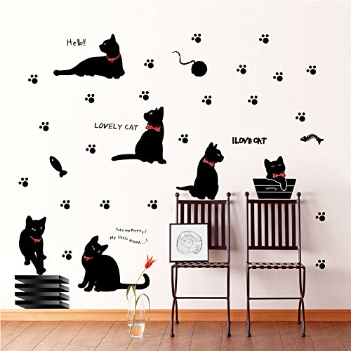 -. Title : Amaonm® Removable DIY Cute Cartoon Black Cat Wall Decor Kids room Wall Sticker Lovly Playing Cat Wall Decals Peel Stick FOR Girls Children Bedroom Classroom Nursery Room Wall Corner