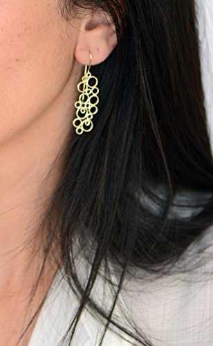 -. Title : 14k Yellow Gold Long Dangle Bubbles Hanging Earring