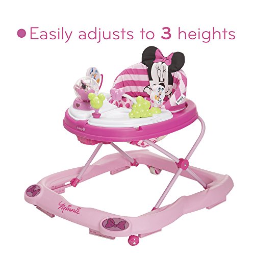 -. Feature : Dimensions: 25.5W x 22.44D x 28.74H in. / For babies who can sit unassisted up to 30 lbs. / 3-position height adjustment / 4 Minnie & friends themed toys / Machine-washable, padded seat