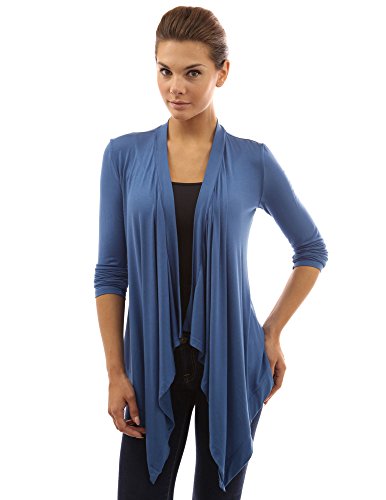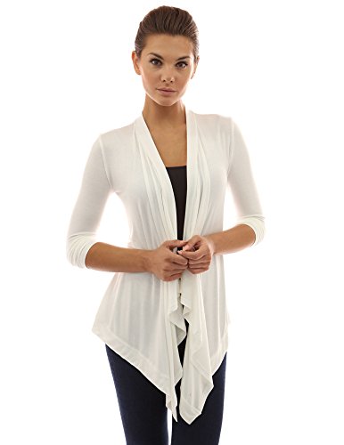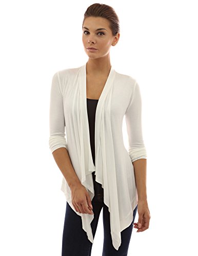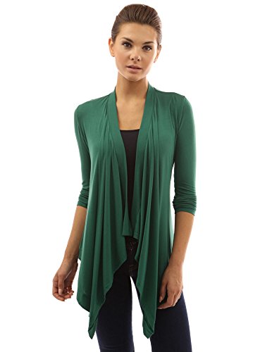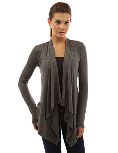 Drape Front Long Sleeve Asym Hem Light Cardigan. Model in pictures is 5 feet 8 inches (173cm) tall.