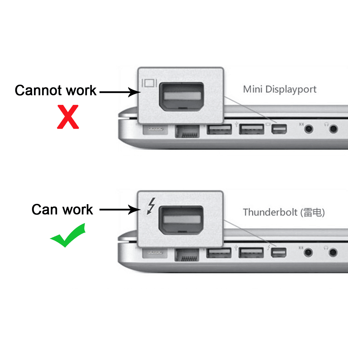 注:接硬盘时确保硬盘同时有雷电接口和供电接口供电才可以使用,请买家在购买前确认。