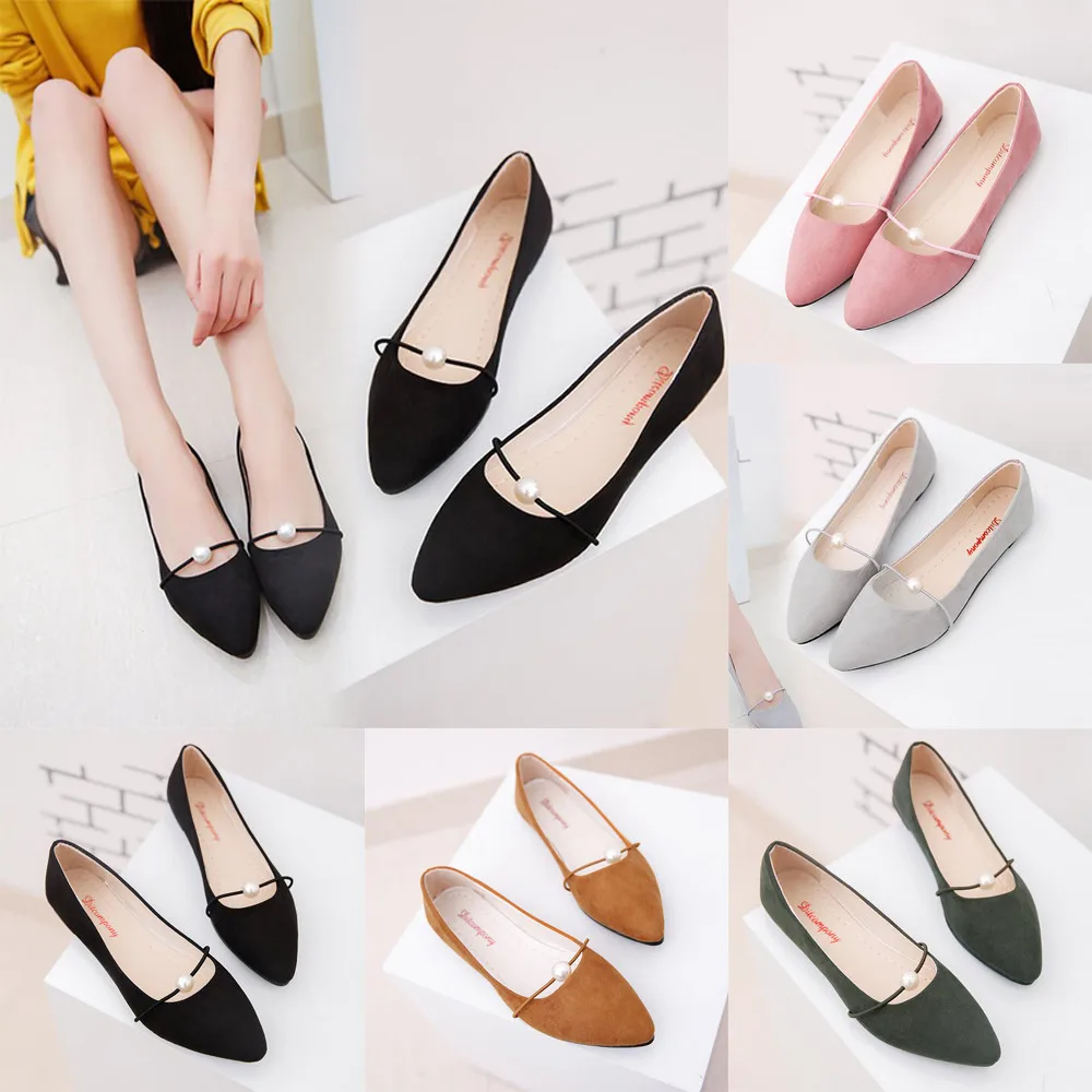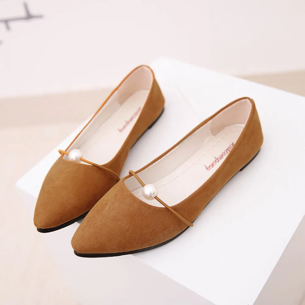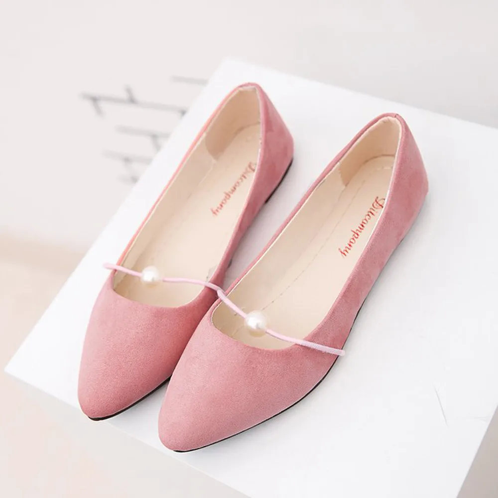 Model Number:Women's Solid Color Suede Flat Heel Pearl Flat Heel Pointed Casual Sho