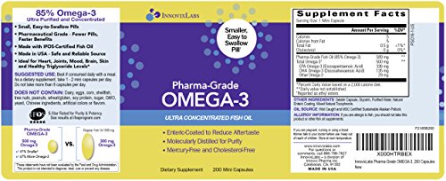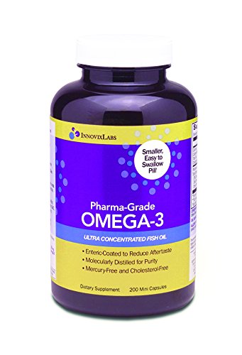 Pharma-Grade OMEGA-3 (by InnovixLabs). Ultra Concentrated Fish Oil, 500 mg Omega-3 per Pill. Enteric Coated, Odorless & Burp-Free. 200 Mini Capsules.