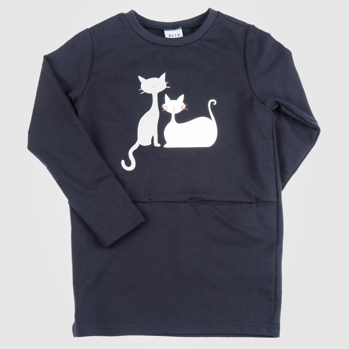 주머니 디테일이 유니크하며 ,앞 쪽 고양이 나염과 자수가 멋스러움을 더해줍니다. 소매 쪽 단추 디테일은 옷을 좀 더 세련되어 보이도록 해줍니다. 레깅스 등과 코디하면 더욱더 편안하게 인도어스타일로 입을 수 있는 아이템입니다.
