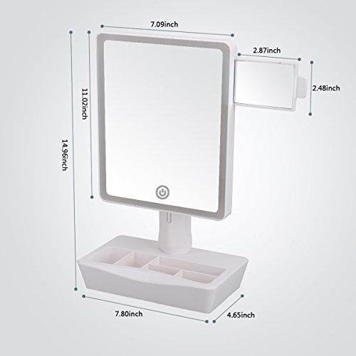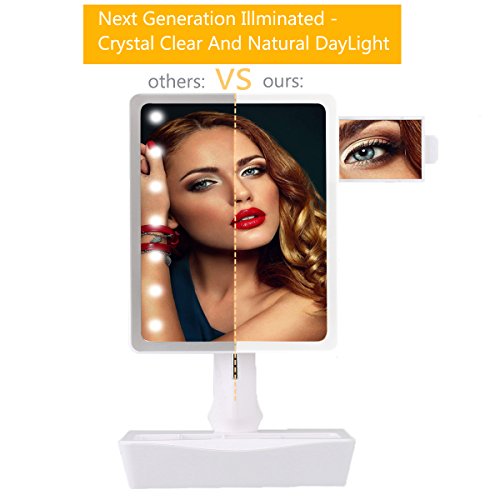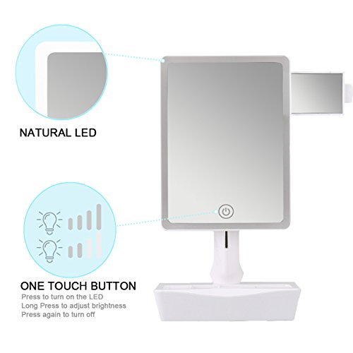♥PUT ON YOUR MAKEUP LIKE A TRUE PROFESSIONAL: Haven’t you had enough struggling to put on your makeup and trying to be precise when applying your mascara or eyeliner? This lighted makeup mirror will make your life easier! Offering you soft, natural daylight and a insert 10x magnifying mirror, this vanity mirror will allow you to have a crystal clear view of what you do, helping you achieve a flawless, professional result.