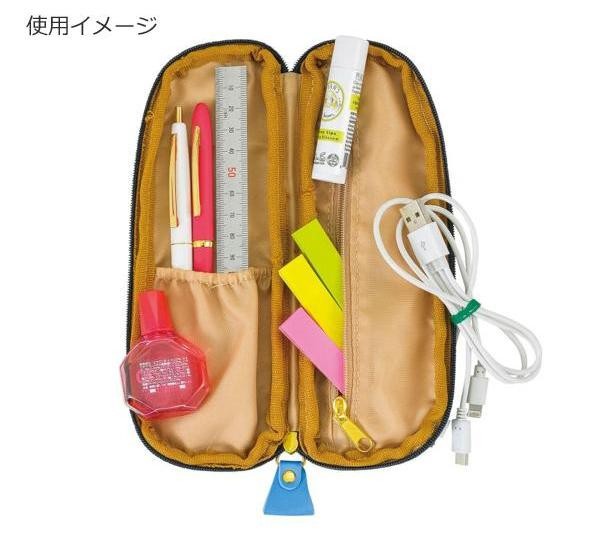 ゆるくて楽しい雰囲気の、ユニークなキャラクターの刺繍がかわいいポーチです。縦長のフラットタイプで、ファスナーを開くと内側にもポケットが付いています。モバイルバッテリーやイヤホンの収納にもおすすめです。 |