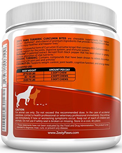 Deliciously Good Joint & Digestive Support - Zesty Paws Turmeric Curcumin Bites are tasty nutritional chewables that can help any dog get the boost they need to feel their best for years to come. Our blend of natural and organic ingredients offer a variety of benefits that promote joint health, proper digestive function, immune support and pain relief for arthritis pain and discomfort.
