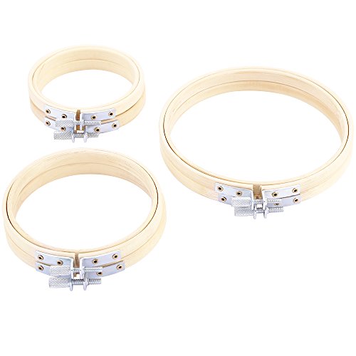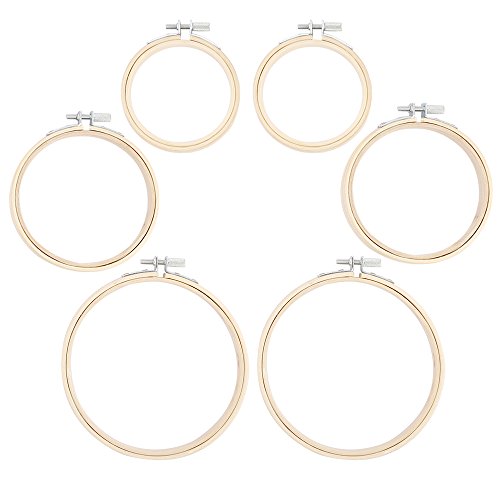 Caydo 6 Pieces 3 Size Kids Small Teaching Embroidery Hoop Set Bamboo Circle Cross Stitch Hoop Ring