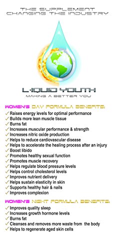 AFTER 7 YEARS OF RESEARCH FINALLY THE 1st ALL-IN-ONE SUPPLEMENT SYSTEM . L-iquid Youth isn't a one dimensional supplement! L-iquid Youth is a complete Supplement System that removes the guess work for you. This product has the highest ingredient levels on the market and is changing peoples lives. Our Day & Night Formulas, which are sold together provides you what your body needs around the clock, 24hrs a Day!