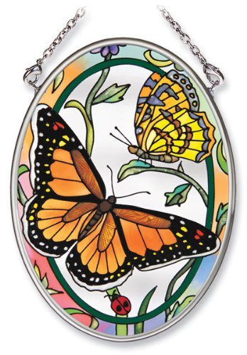 Amia 7655 Small Oval Suncatcher with Butterfly Design, 3-1/4-Inch W by 4-1/4-Inch L, Hand-painted Glass