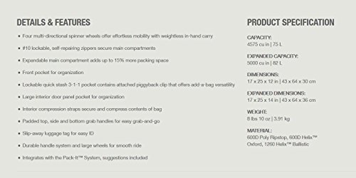 Product DescriptionThis 4 wheel luggage provides weightless in-hand carry, innovative travel features and a classic eagle creek design aesthetic0