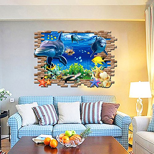 -. Title : 3d Dolphin Turtle Underwater World Vinyl Wall Decal PVC Home Sticker House Paper Decoration Wallpaper Living Room Bedroom Kitchen Art Picture DIY Murals Kids Nursery Baby Decor