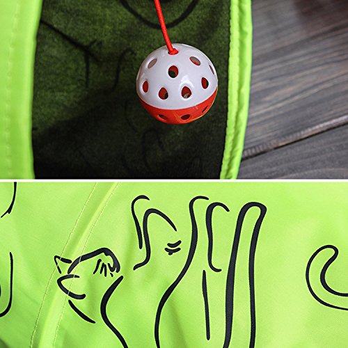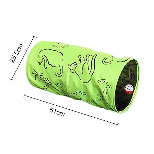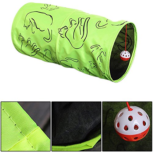Features: 1. Durable oxford cloth material 2. Breathable design 3. Rustling ball 4. Foldable Parameters: Material: Oxford Cloth Color: Green Size (about): length: 51CM or 20.08 inch, height: 25.5CM or 10.04 inch, ball diameter: 4.3CM or 1.69 inch, rope length: 12.5CM or 4.92 inch Applicable Pets: Cats, Small Dogs, Rabbits, Small Animals Package includes: 1 x Foldable Pet Cat Tunnel 0