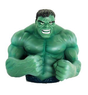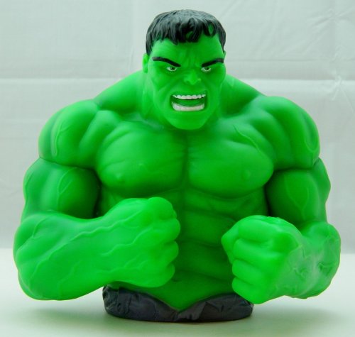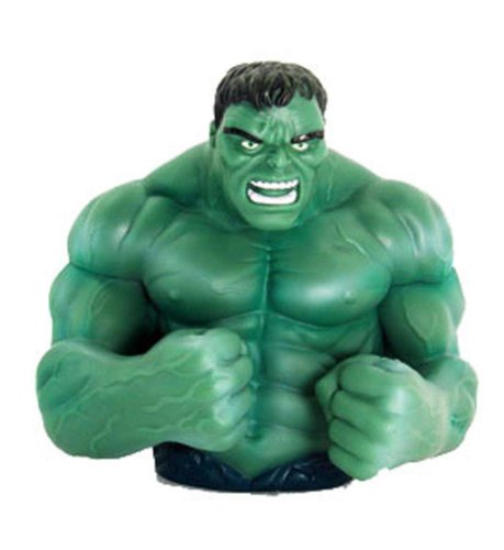 Studio : Monogram International Publisher : Monogram International Binding : Toy Product Description Hulk Bust Bank is made of Roto Plastic. Will not become too heavy when filled with change. Detailed Figural Hulk flexing his muscles and ready to fight. Great size perfect to display on desk top or shelf.