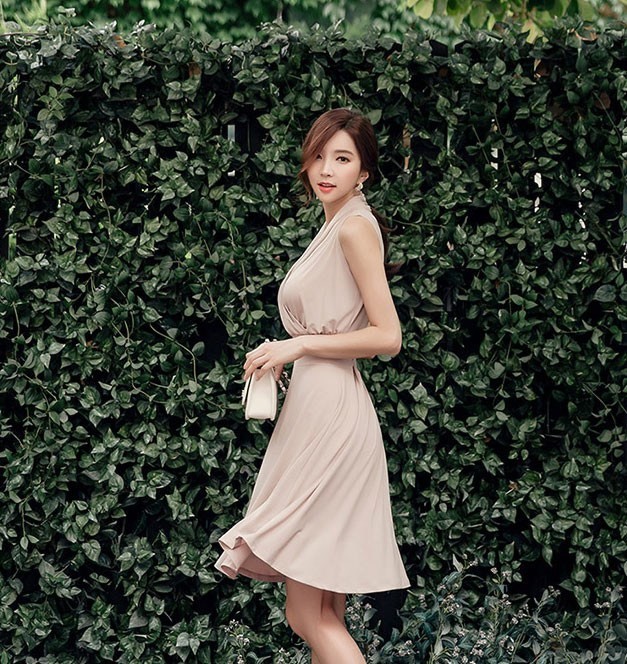 商品名:40代ファッション ワンピース レディース カシュクールワンピース 膝丈 無地 ノースリーブ 2017 春夏 新作 ワンピ